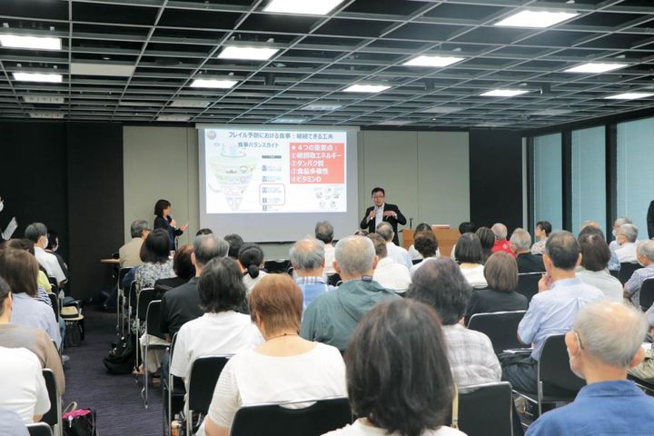 定期的に開催している実践健康セミナーで昨年、東京大学高齢社会総合研究機構・未来ビジョン研究センター教授の飯島勝矢さんが「フレイル」についての講演をした。