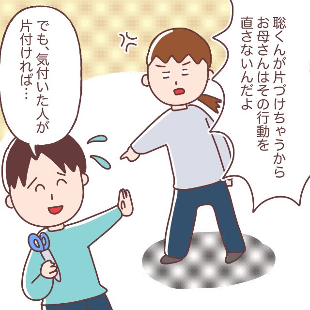 「聡くんが片づけちゃうから、お母さんはその行動を直さないんだよ」とまたしてもこっちに妻の怒りが・・。「でも、気づいた人が片づければ・・」僕が恐る恐るそう言うと、