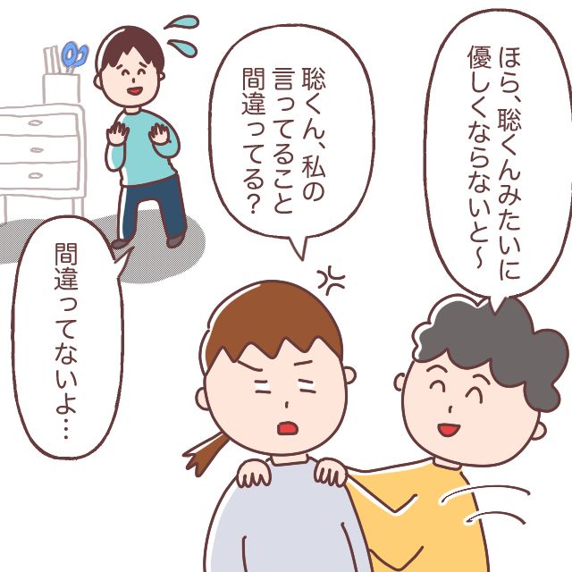 「ほら、聡くんみたいに優しくならないと~」義母が全く悪びれずに妻の肩をもみながらそう言うと、「聡くん、私の言ってること間違ってる?」と怒りながら言う妻。「間違ってないよ・・」僕の言葉に、