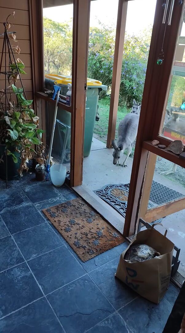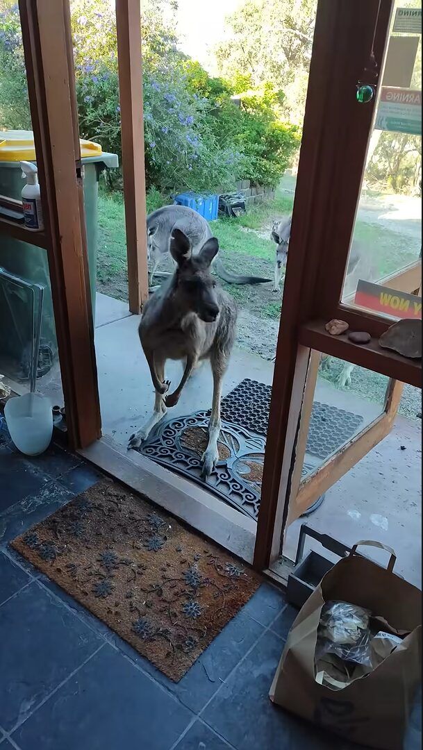 長年顔見知りのお客さん。やって来たのは家族を連れた野生のカンガルー!?【海外・動画】