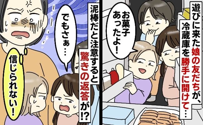 放課後はよく、小学2年生の次女のお友だちが家に遊びに来るのですが、ある日冷蔵庫のお菓子をお友だちが勝手に食べていたことが発覚して……?