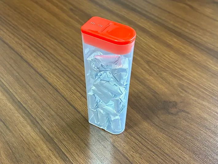 実際に空き容器を使ってみて、コンパクトで蓋つきという特徴を生かせば、デスク周りから外出先まで、幅広く活用できる点が魅力だと感じます。