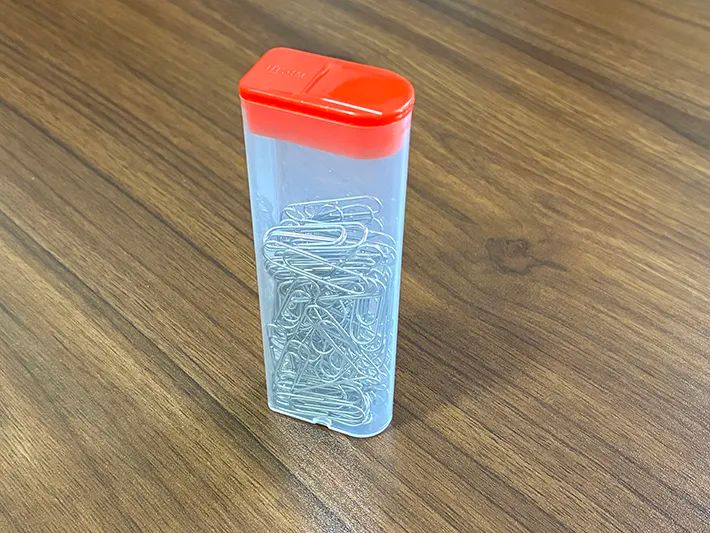 コンパクトながらもしっかりと蓋が閉まるため、細かいクリップもまとめて収納できます。