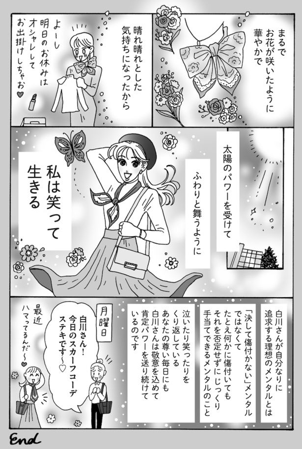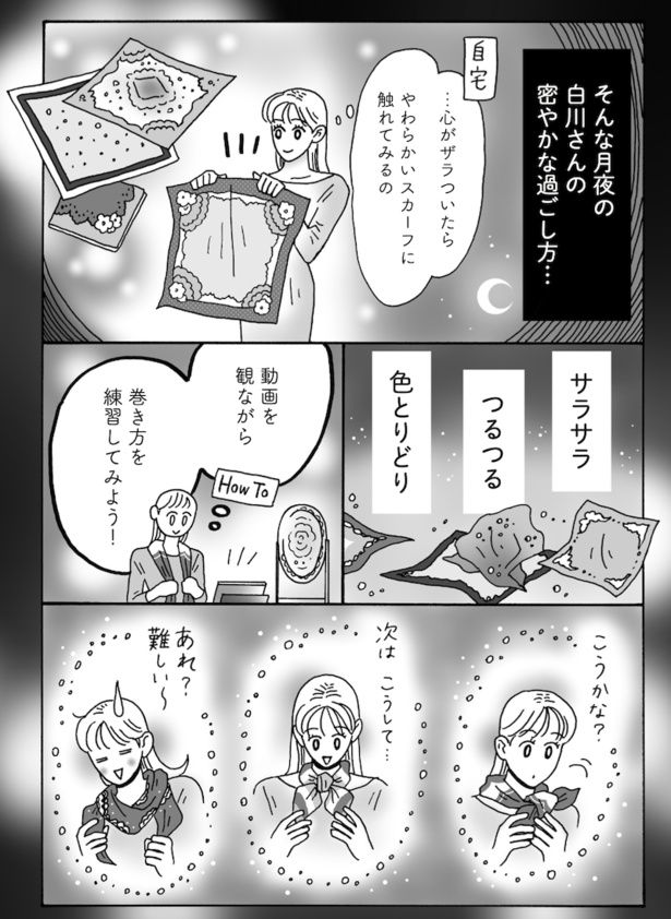 やわらかなスカーフを巻いて心のケア。メンタル強め女子流、落ち込む夜の過ごし方/メンタル強め美女白川さん8⑦