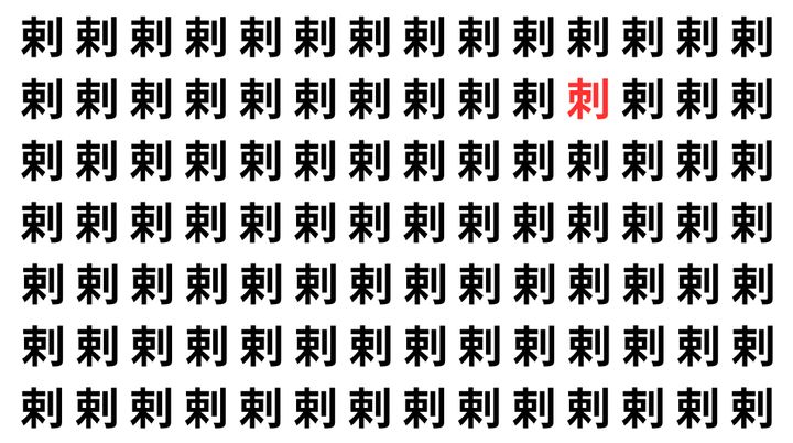 たくさんの「剌」の中に、よく似た別の漢字が1文字だけ隠れています。