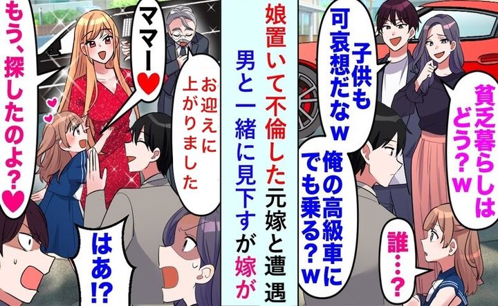 振り返ると、そこには真っ赤な外車に寄りかかる元妻と、成金風の男が立っていました。元妻はブランド品で身を固め、私と娘を蔑むような目で見つめています。