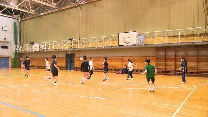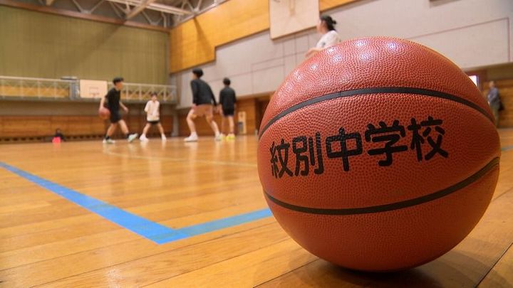 北海道オホーツク地方の紋別中学校で、汗を流すバスケットボール部。