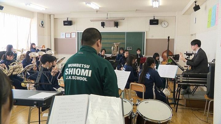 音楽室で練習していたのは、紋別中と潮見中、2つの学校の生徒による「合同バンド」です。