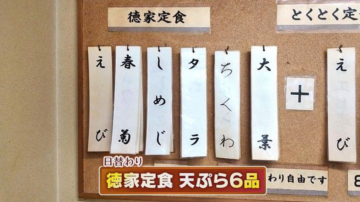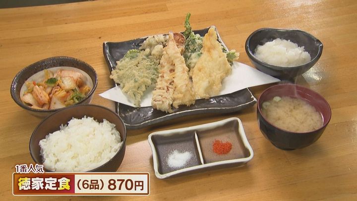 1番人気の徳家定食は日替わりの天ぷら6品。