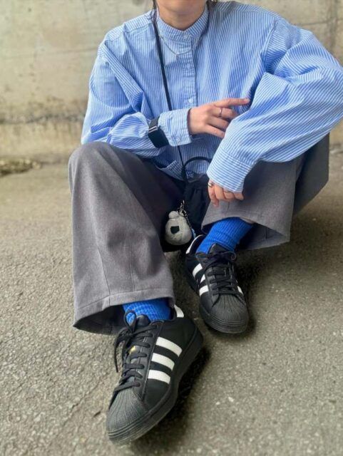 中でもおすすめなのが、adidas(アディダス)やOnitsuka Tiger(オニツカタイガー)から展開されている配色ラインスニーカー。パンツ・スカートのどちらにも似合う汎用性が持ち味です。