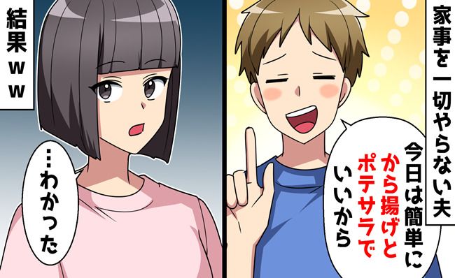 しかし夫はというと、「遅いよ。早く唐揚げとポテサラ作って」と、不満げに言ってきたのです。