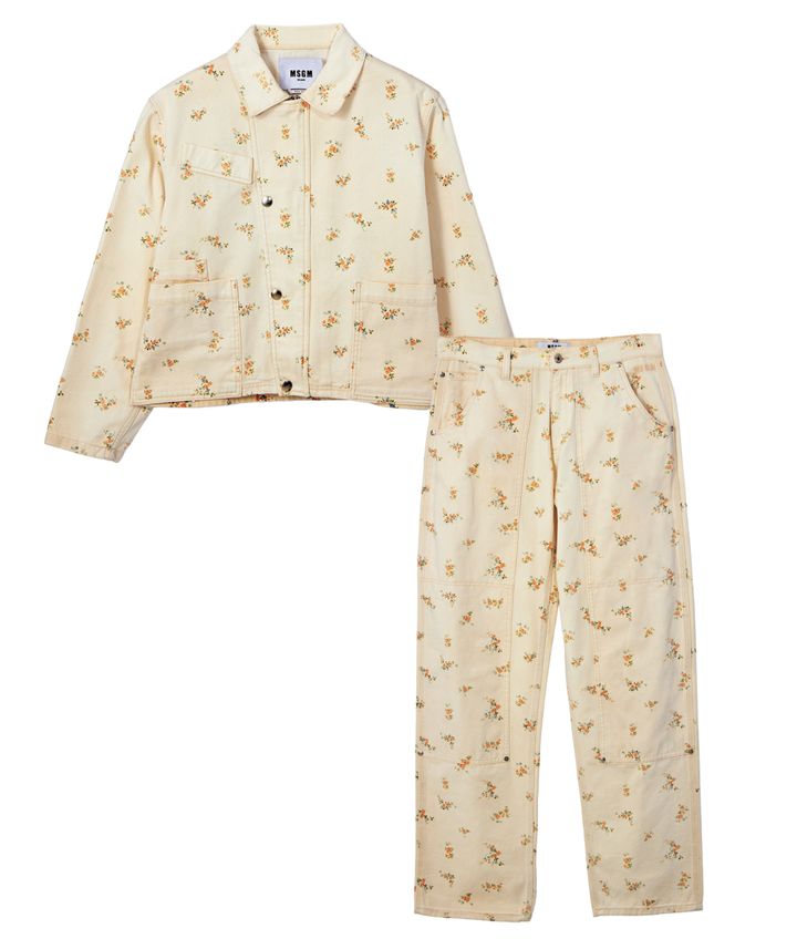 コットンキャンバスに可憐な花柄プリントをオン! 海外の女のコのような、ヌケ感のあるガーリーを楽しんで。ジャケット¥138,600、パンツ¥ 93,500(全てMSGM/アオイ)