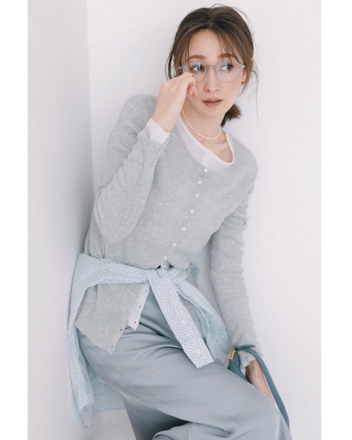 カーディガン各¥3,850(ともにBASEMENT online)スカート¥12,100(エメイン)腰に巻いたシャツ¥42,900(フランク&アイリーン/リトルリーグ インク)バッグ¥75,900(マエストソ/アマン)メガネ¥23,800(CARIN/STARDREAM JAPAN)ネックレス¥17,600(les bon bon/フーブス)リング¥4,950(mimi33/サンポークリエイト)