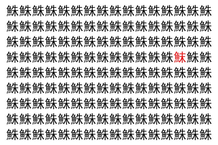 2. 【脳トレ】「鮢」の中に紛れて1つ違う文字がある!?あなたは何秒で探し出せるかな??【違う文字を探せ!】