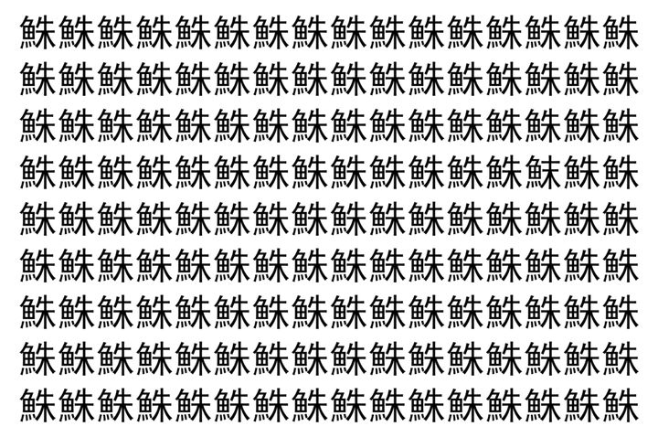 【脳トレ】「鮢」の中に紛れて1つ違う文字がある!?あなたは何秒で探し出せるかな??【違う文字を探せ!】