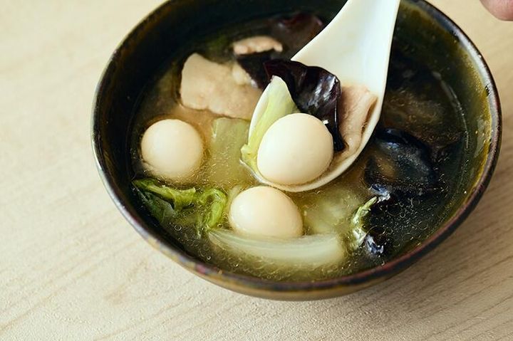 3. 満足度、優勝!白メシにかけて丼にして、ワシワシとかっ込みたい。「うずらのたまご入り八宝菜風スープ」/4月12日の『たまごスープ日めくりカレンダー』