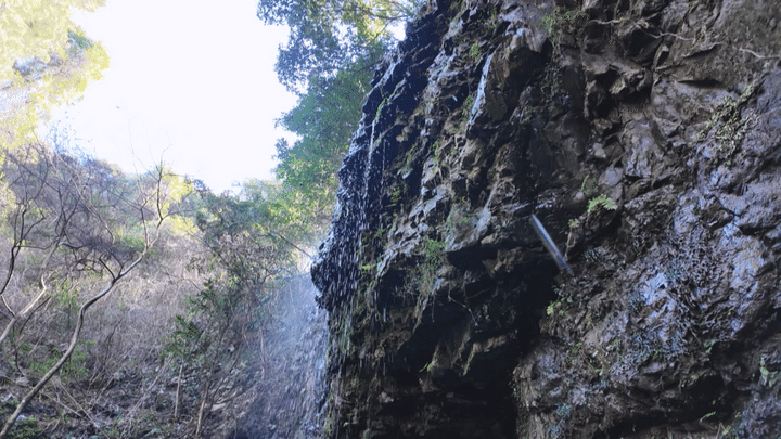 今回のルートは全長2.3kmの短距離コース。「山頂まで2kmちょっと、距離的にはそんなでもないか」と余裕の表情でスタートを切った前川さん、階段が施されてよく整備された登山道に入るとさっそく「涼みの滝」に差し掛かります。この季節、まだ水量は少なめですが、夏の登山時にはさぞや爽やかな水の音に癒されることでしょう。そんなことを想像しながら登山を続けます。