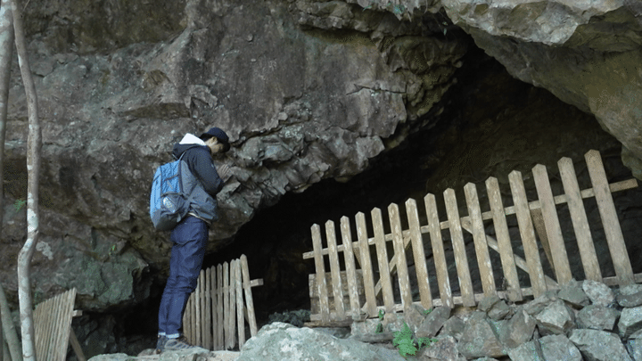 続いて現れたのは江戸時代の僧侶・徳本上人が念仏修行を行った洞窟。和歌山県にはこのような信仰の山が数多く存在し、多くの宗教者が修行を行っていたと伝わっています。