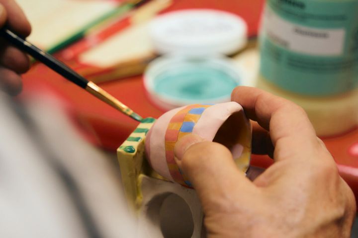 ペイント柄が施された陶器オブジェ2点のプロダクトカット