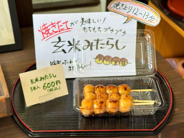 さらに見逃せないのが「玄米みたらし」。焼きたては、香ばしさと玄米のプチプチ食感、自家製だれのバランスが絶妙。焼きたてを味わいたい場合は、来店前の予約がおすすめです。