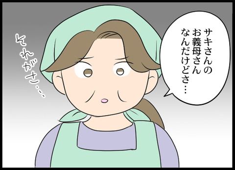 盗撮の余罪で逮捕された店長は解雇され、サキは楽しく仕事ができるようになりました。しかし、相変わらず噂を鵜呑みにして言いがかりをつけてくる義母の友人が来るのでした。