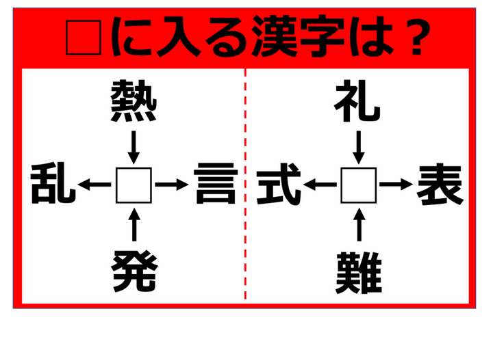 【漢字パズル】熱□、□乱、発□、□言 □に入る漢字は何…!?