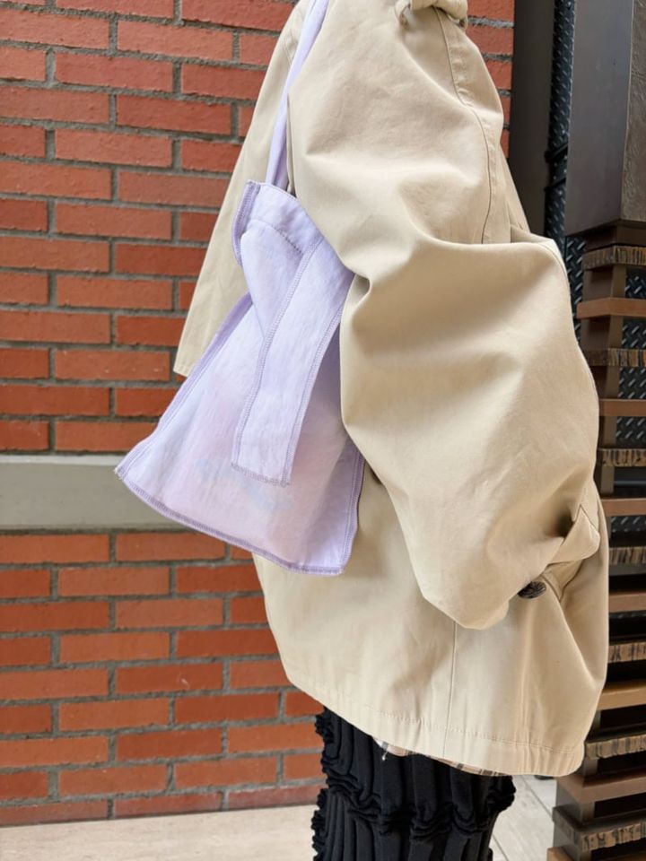 【スナップ】パープルのバッグがアクセント。「CLANE」のトレンチコートで作るワンランク上のお出かけコーデ