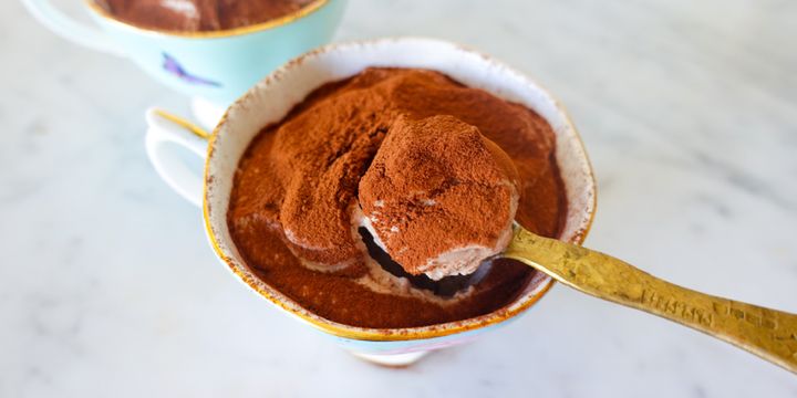 カップに1を流し入れ、冷蔵庫で1時間ほど冷やし、上からココアパウダーをかけて召し上がれ!