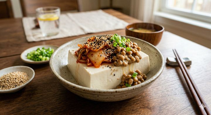 3日目にして、早くも体の変化に気づく。これまで午後になると襲ってきた「甘いものへの欲求」が、心なしか穏やかになったのだ。これは豆腐に含まれる良質なたんぱく質と水分が、高い腹持ちをキープしてくれているおかげかもしれない。 この日は発酵食品のコンボである「納豆+キムチ+ごま」をトッピング。夜遅くの食事でもコレステロールゼロ、かつ低糖質なので、罪悪感なく眠りにつけるのが何よりのストレス解消になった。