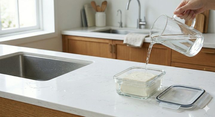一度パックを開封した豆腐を保存する場合は、元の水は捨て、清潔な密閉容器に移して豆腐がしっかり浸かる程度のきれいな水に入れ替えてから冷蔵庫に入れよう。