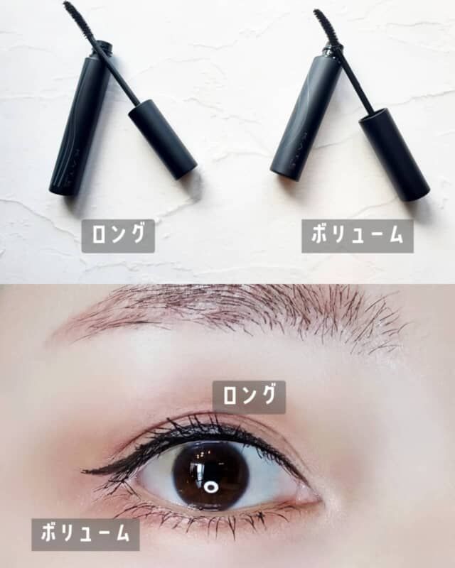 ロングタイプはセパレートロングブラシでダマになりにくく、自然に長さをプラス。ボリュームタイプはやわらかい繊維で束感のある仕上がりに。1度塗りでもしっかり存在感が出るのに、時間が経ってもにじみにくいのが印象的でした。