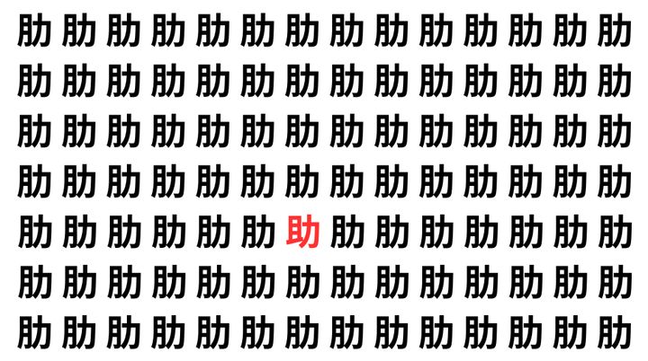 たくさんの「肋」の中に、よく似た別の漢字が1文字だけ隠れています。