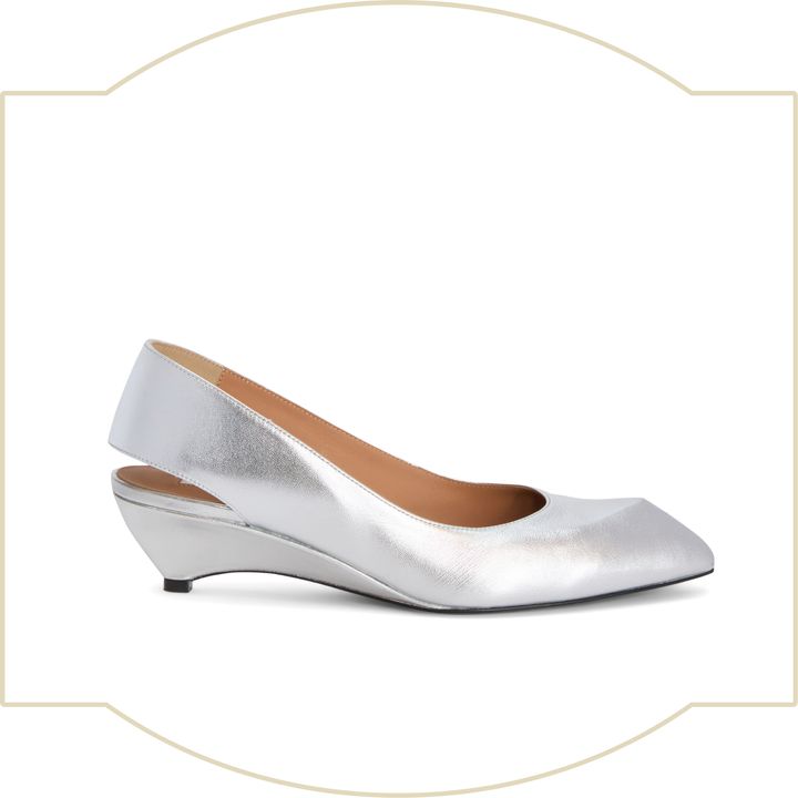 シモーネ・ベロッティによる新たなレディ・トゥ・ウェアにみられる車のボンネット作品“HOODS”からディテールを得たモデル。アーチを描くような立体的で美しいフォルムが際立つスリングバックシューズは、マットなメタリックシルバーの質感が放つクールなたたずまいで、足元にモダンでエッジィな存在感を与える。