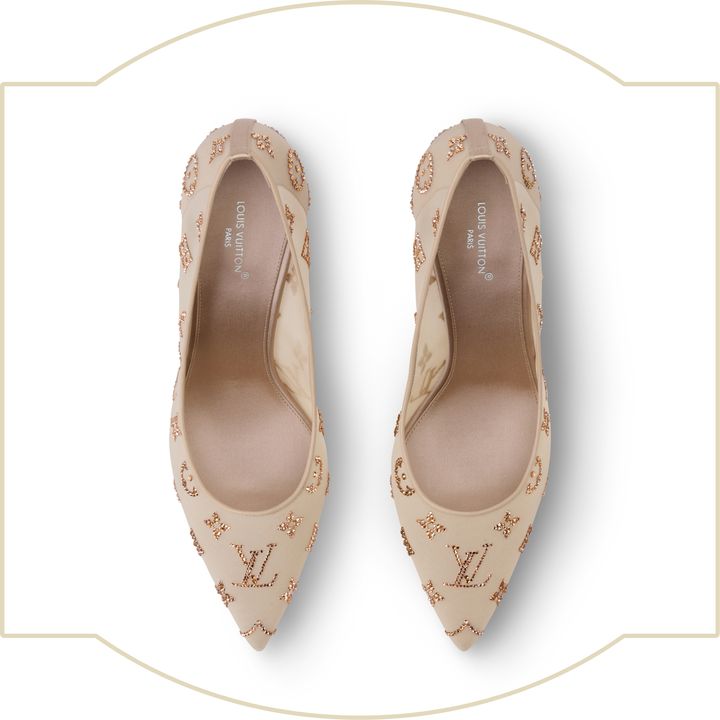 足元をほんのりと透かす繊細なメッシュに、きらめくストーンでモノグラム・パターンをあしらった“ガラ パンプス”は、タイムレスな気品と華やかさをまとった逸品。ポインテッドトゥやエレガントな高めのヒール、そして上質なレザーアウトソールの調和が、イブニングシーンにふさわしいフェミニンで究極にエレガントな足元を完成させる。