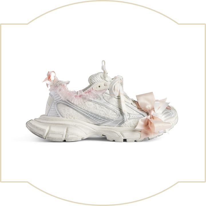 極端にワイドでボリューミーなソールとレトロなランニングシューズの要素を融合させたアイコンモデル“3XL”から、アッパーにリボンとレースのディテールを大胆にまとわせたフェミニンな新作が登場。ユーズド感のある質感に、繊細なレースといった相反する要素が共存し、唯一無二のラグジュアリースニーカーに仕上がっている。
