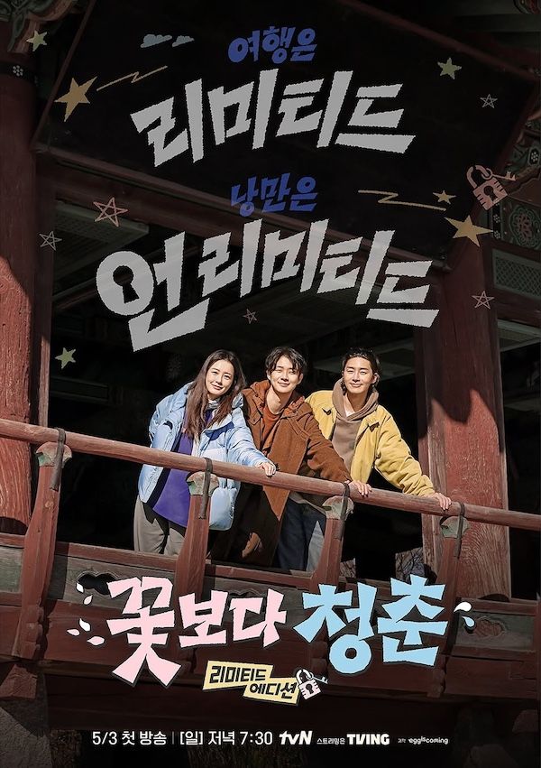 足の向くまま旅を楽しむチョン・ユミ、パク・ソジュン、チェ・ウシクのロマンあふれる旅行記『花より青春 リミテッドエディション』は、来る5月3日(日)午後7時30分に放送開始。世界配信は未定。