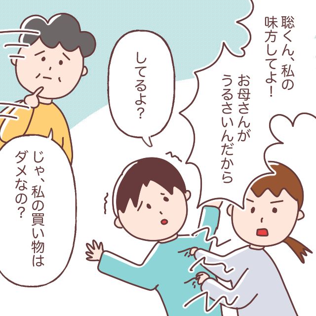 「聡くん、私の味方してよ!お母さんがうるさいんだから」と突然僕に掴みかかって来る妻にビックリ!「してるよ?」と言うと、「じゃ、私の買い物はダメなの?」と今度は義母が言い出しました。