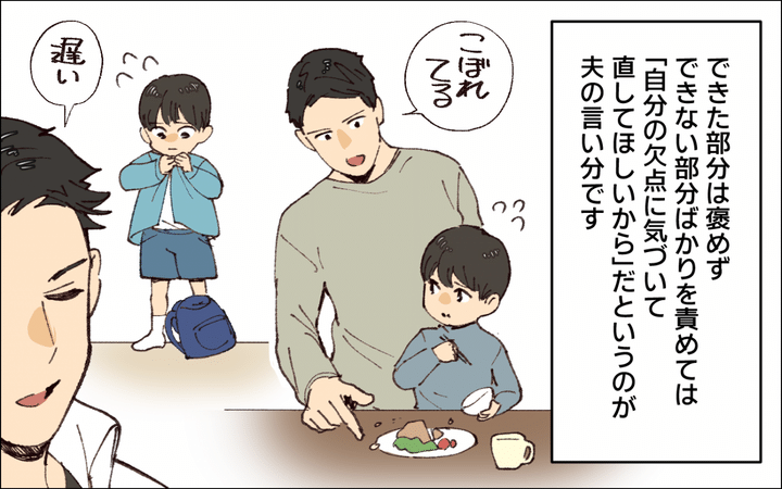 3. 「支度が遅い!こぼれてるぞ!」夫の子育ては厳しすぎる! そして息子も限界に…妻が指摘すると夫の職場での態度が明らかに