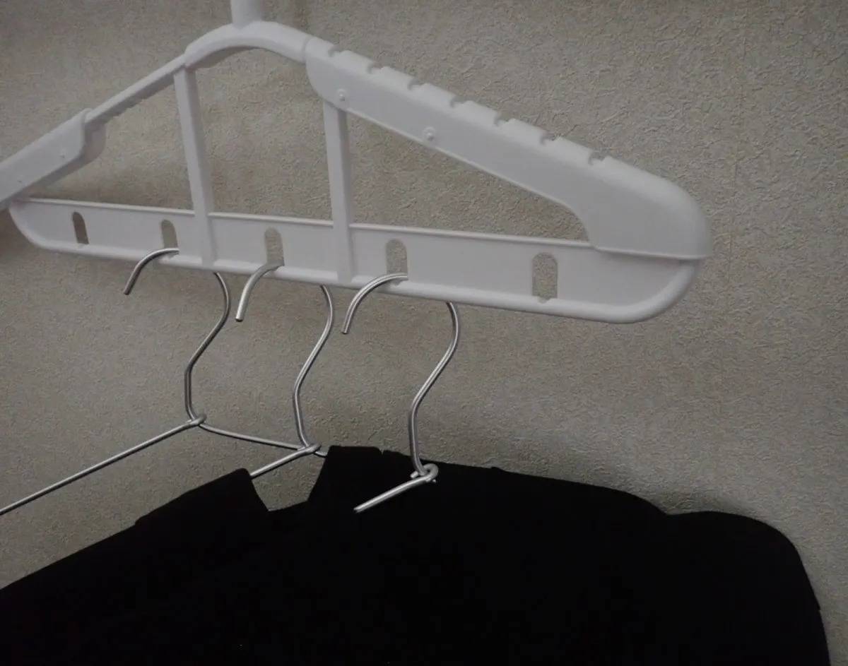 限られたスペースでもたっぷり衣類を干せるのが、DAISO(ダイソー)の「省スペースハンガー」です。