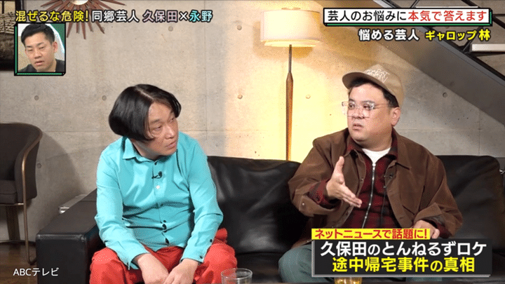 なお、久保田が前代未聞の行動を語った様子は、海原やすよ ともこが司会を務めるバラエティ番組『やすとものいたって真剣です』(ABCテレビ)4月9日放送回で紹介された。同放送回では、ギャロップ・林健の悩み相談をきっかけに、久保田と永野が芸人としての立ち回りについて本音を語っている。