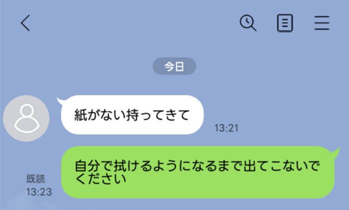 3. 「紙がない持ってきて」とわざわざトイレからメッセージを送る夫。だが、私の返した嫌味で態度が一変