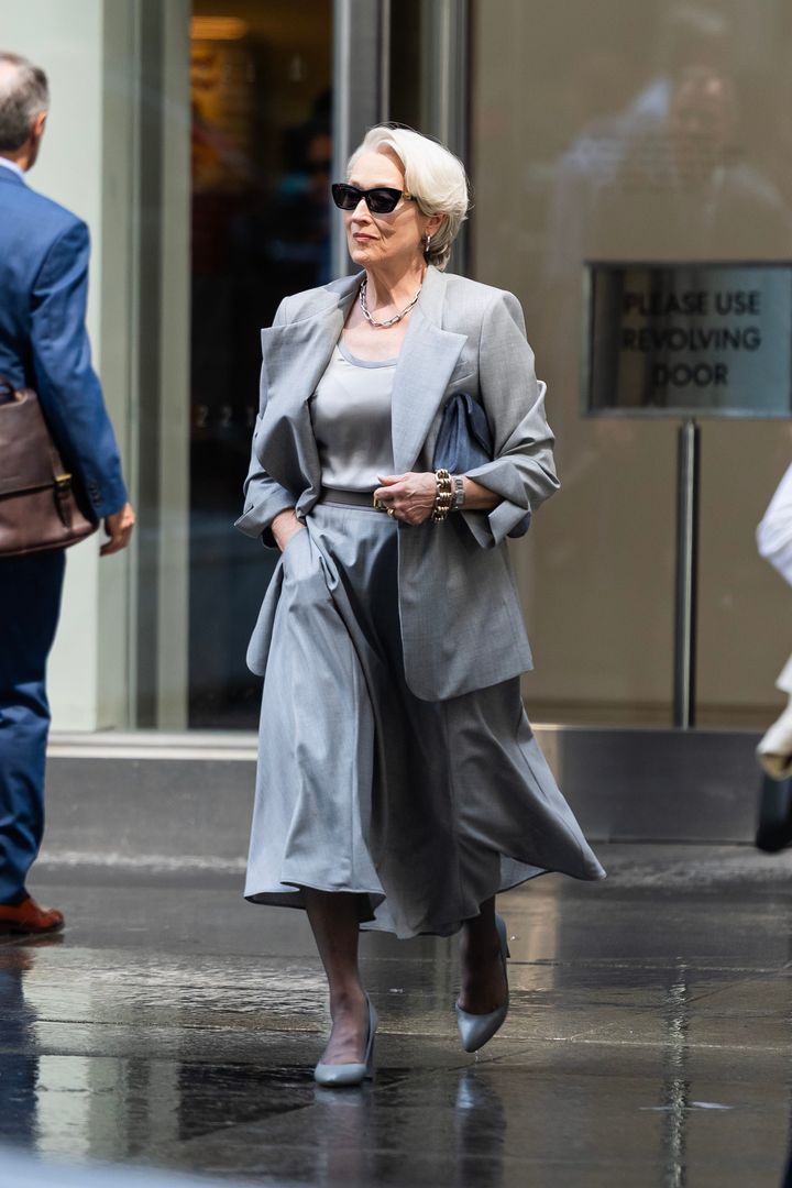 撮影現場で初公開された、メリル・ストリープ演じる編集長ミランダ・プリーストリーのルックがこちら。