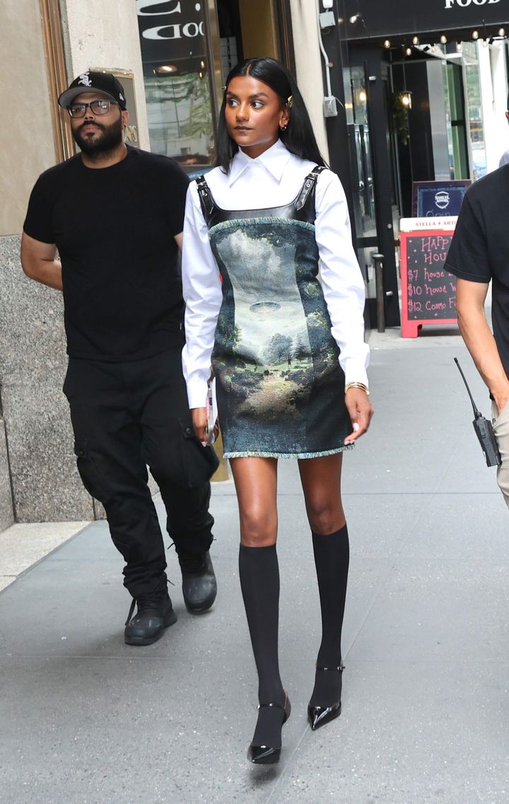『ブリジャートン家』で大ブレイクしたイギリス出身の俳優シモーヌ。『プラダを着た悪魔2』での役柄はまだ明らかでないものの、撮影現場でキャッチされた姿は、編集部の若手エディターのような雰囲気。