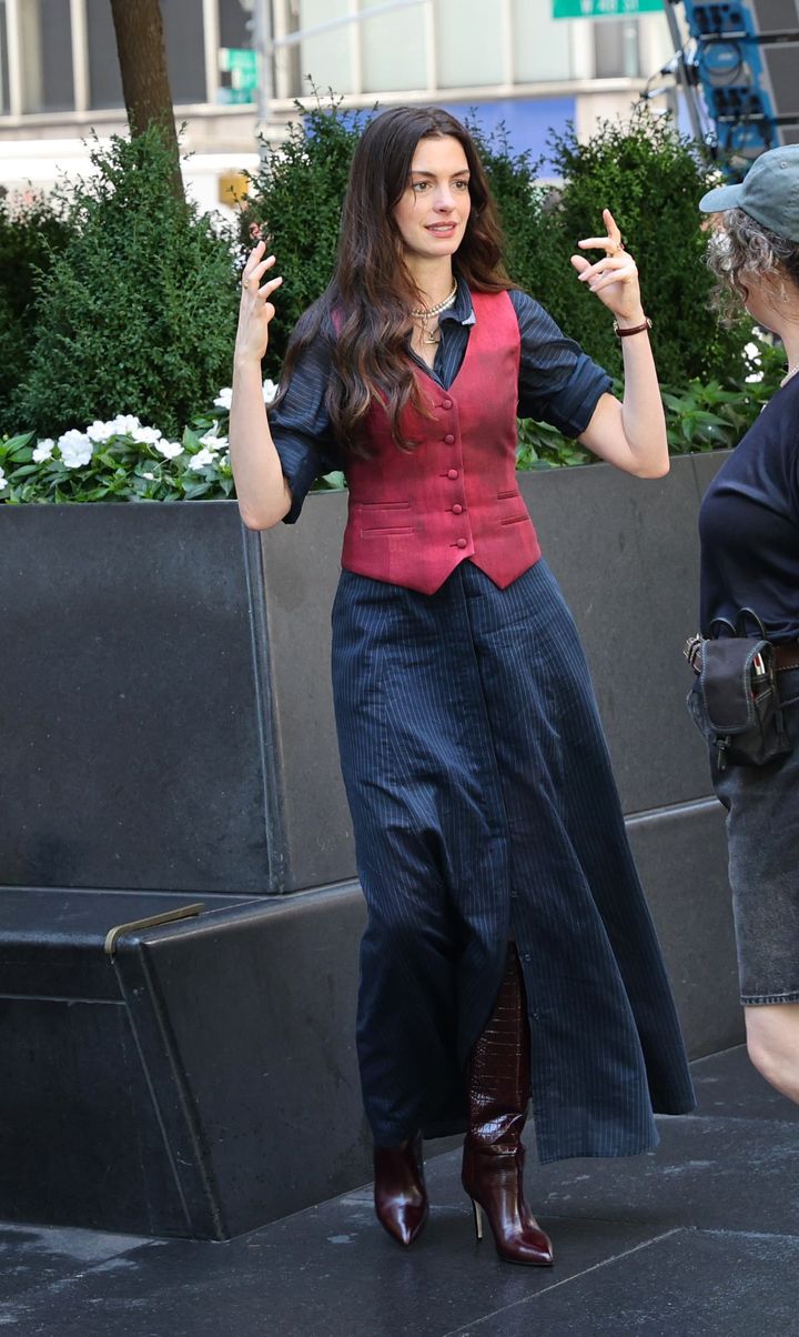 この映画で確実に期待できることといえばやはり、誰もが真似したくなるようなファッションの数々。アンはこのほど、自身が演じる主人公のアンディ・サックスの新たなルックを、インスタグラムで初披露した。そこには、ジャンポール・ゴルチエによる、ヴィンテージのピンストライプのベストとパンツのセットアップを着用した姿が投稿されている。その後まもなく、彼女の撮影現場での写真が次々と公開され、『プラダを着た悪魔2』に登場する洗練ファッションを垣間見ることができている。