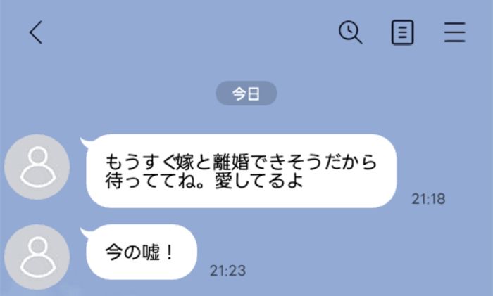 「もうすぐ嫁と離婚できそうだから待っててね。愛してるよ」