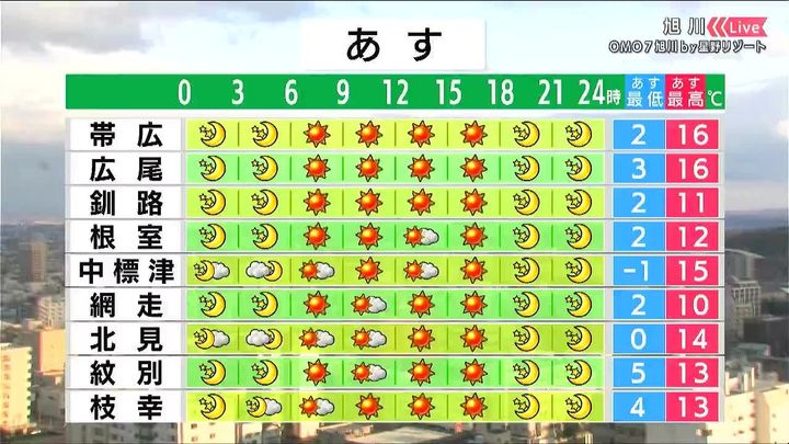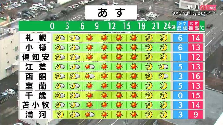・あすの札幌の朝昼晩の天気