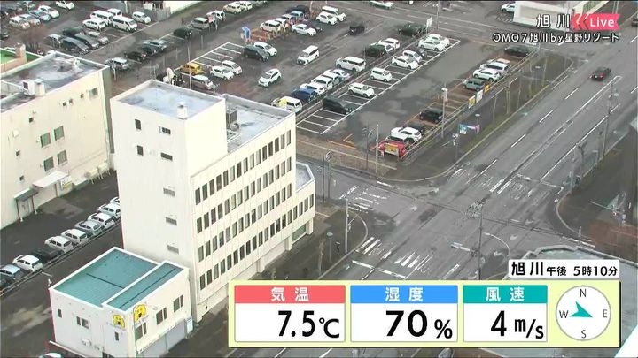 背景は13日午後5時ごろの旭川情報カメラ