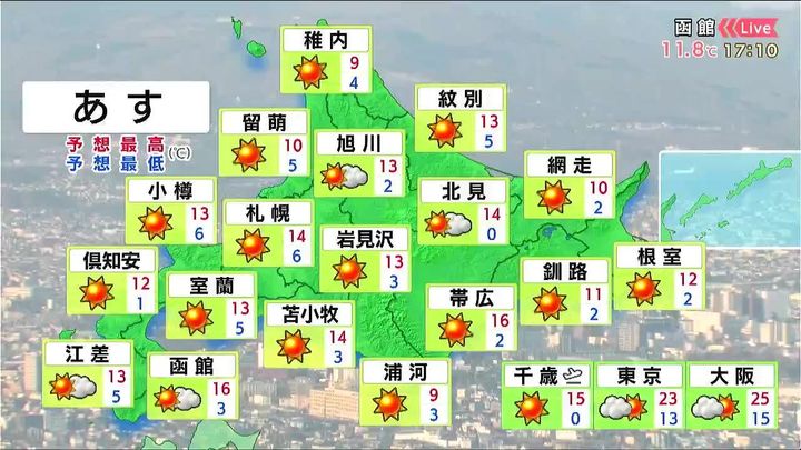 ・あすの北海道の天気と気温