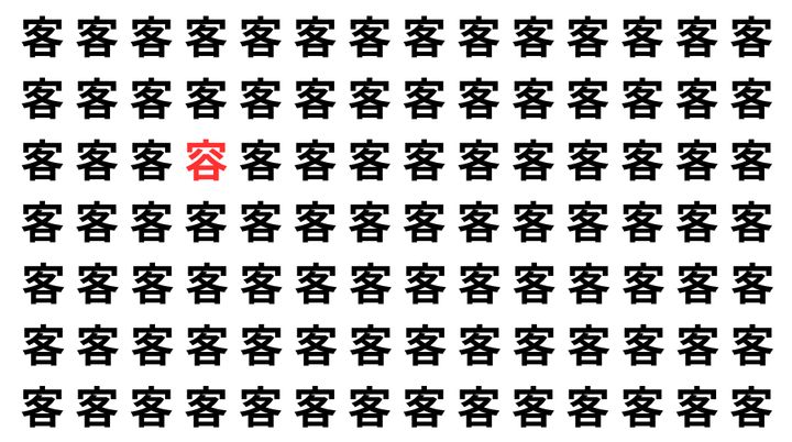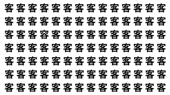 たくさんの「客」の中に、よく似た別の漢字が1文字だけ隠れています。