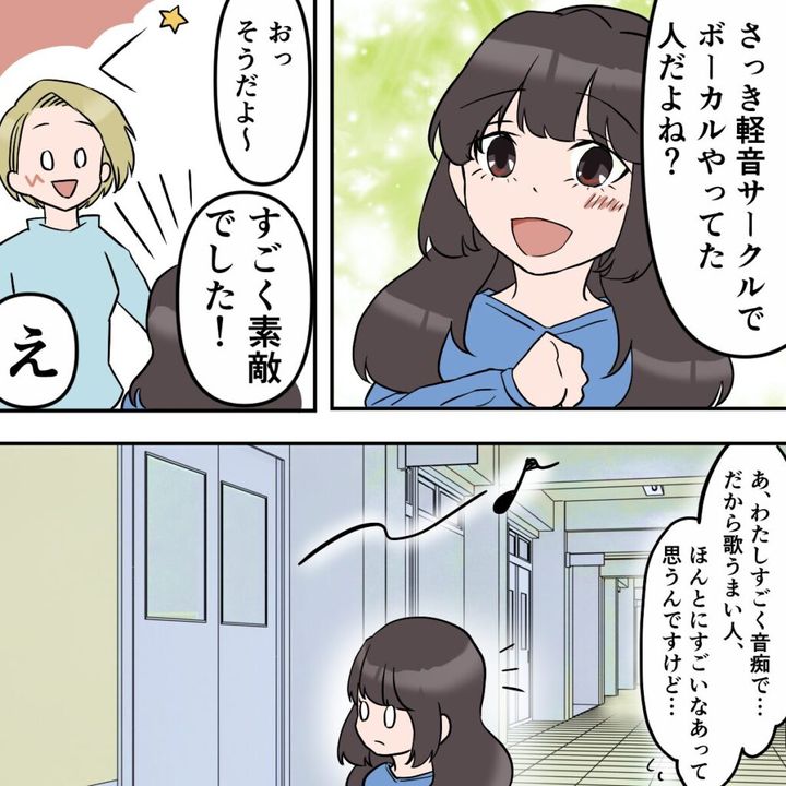 大学に入学して間もない頃のこと。サークルの練習が終わった後、「あの、さっき軽音サークルでボーカルやってた人だよね?」と、ふいに声をかけられました。私が「そうだよ~」と答えると、サユリは目を輝かせて「すごく素敵でした!」と褒めてくれました。まっすぐで飾らないその言葉に、嬉しくなったのを今でもはっきりと覚えています。